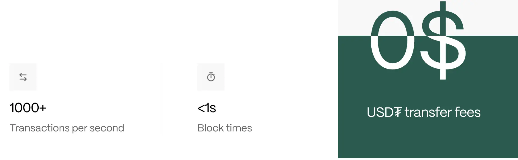 Stable 实现子秒级区块确认,支持高吞吐量、低成本和快速结算,同时提供企业专属区块空间和合规隐私交易方案。通过优化交易执行、状态存储和批量处理,Stable 保证链上交易的高效性与低延迟。