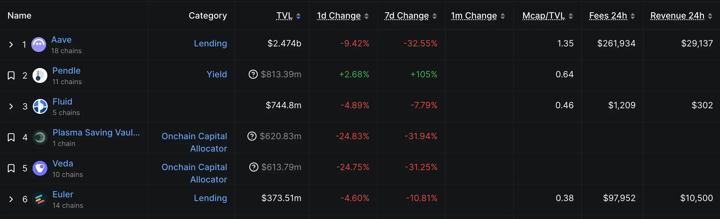 Figure 8. Plasma protocol ranking. Source: https://defillama.com/chain/plasma