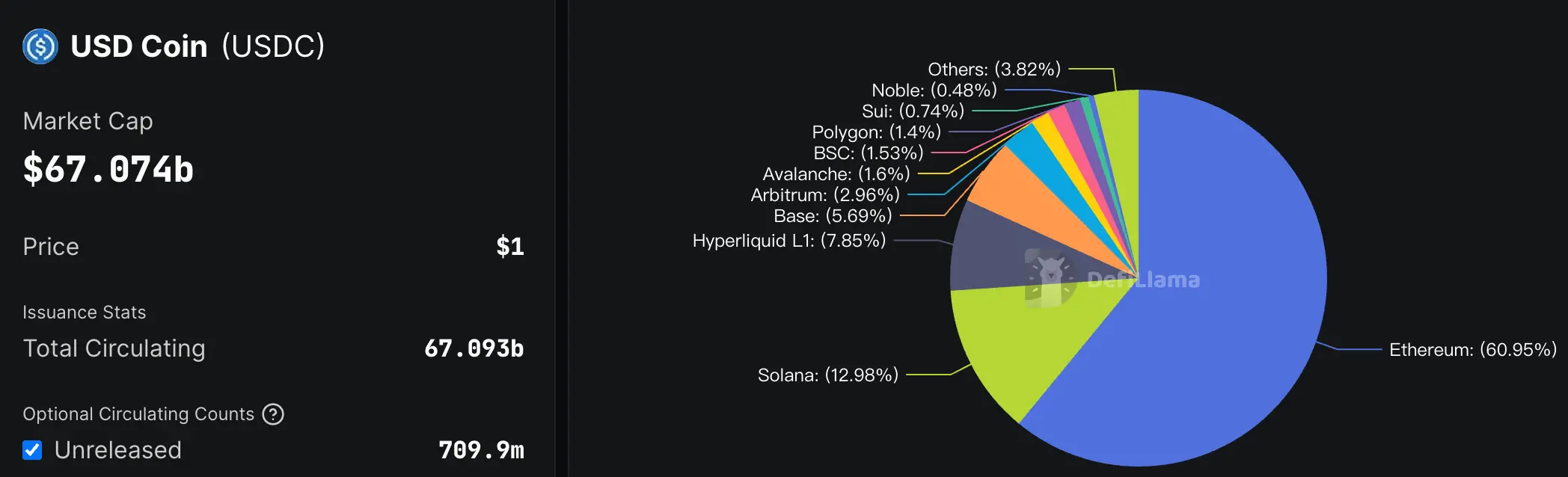 Figure 13. USDC circulation on chains. Source: https://defillama.com/stablecoin/usd-coin