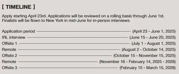 MegaMafia 2.0 的申请期将于 2025 年 4 月 23 日启动,持续开放至 2026 年 3 月 15 日。在此期间将举办三场线下交流活动与两场远程研讨会。