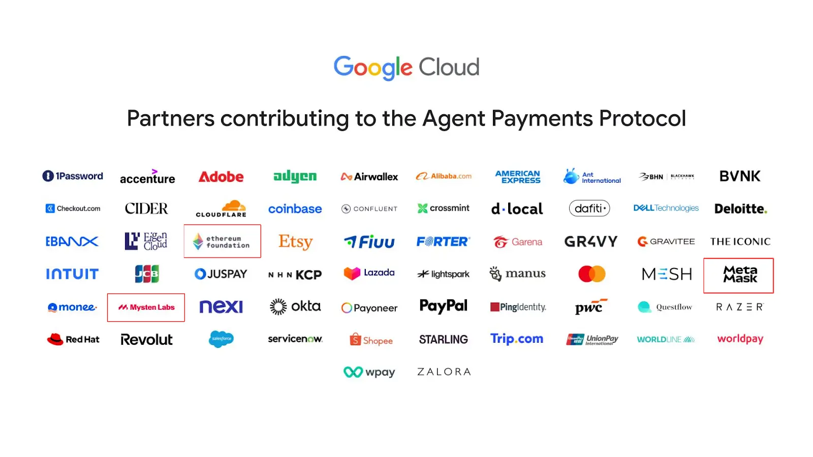 前不久,Google 推出 Agent Payments Protocol (AP2) 协议,Ethereum Foundation、Mysten Labs、MetaMask 等加密巨头赫然在列。
