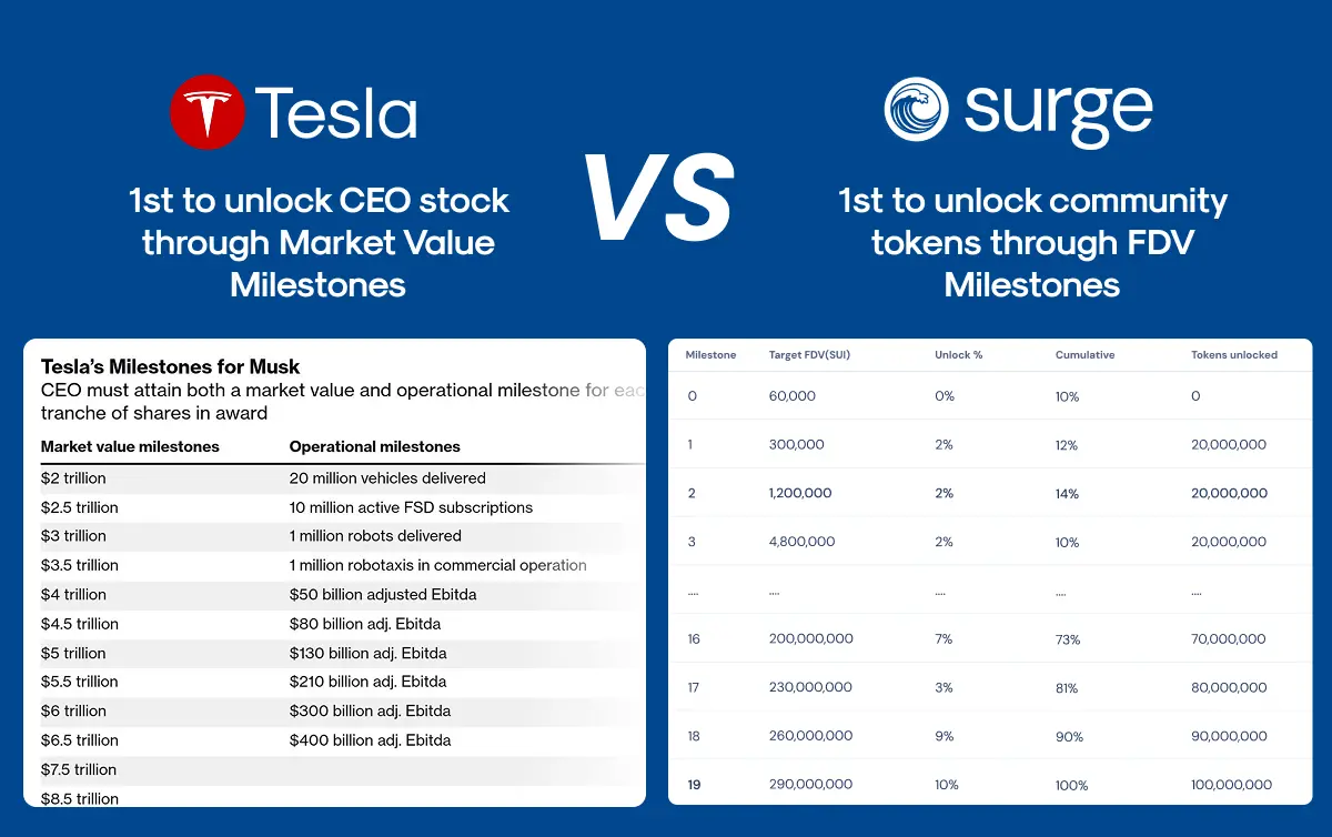 这像极了最近特斯拉董事会为马斯克量身定制的“市值绩效薪酬计划”——但 Surge 把它搬上了区块链。