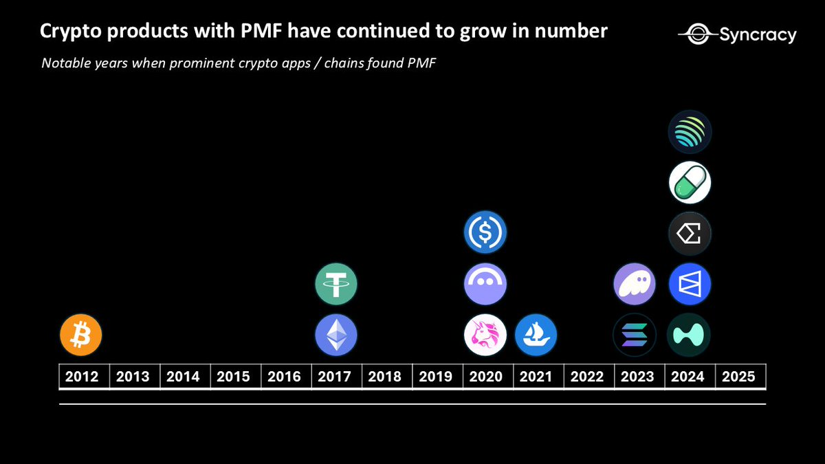 以下是一些我认为已经找到产品市场契合点(PMF,Product-Market Fit),或者至少为加密垂直领域找到 PMF 打开了路径的加密产品。虽然这样的产品数量并不多,但随着每个发展“周期”的推进,我们能够在基础设施改进和知识积累的基础上创造出更多有意义的产品。
