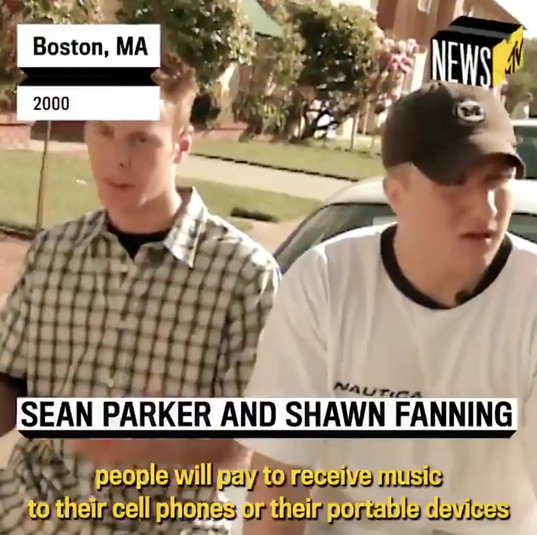 由 Shawn Fanning、Sean Parker 在 1999 年建立,在那之前唱片公司与艺人的关系紧密,掌控发行和宣传,用户只能通过唱片行、唱片店、电视/电台等渠道接触新歌,实体唱片的利润率较高,尤其在 1990 年代,CD 销售曾达到顶峰。而 Napster 使用了点对点技术(P2P)让用户直接共享自己的 MP 3 文件,形成一个全球性的音乐下载网络。短时间内积累了上千万用户。因其去中心化服务器的模式让唱片公司无法切断源头,深刻冲击了传统唱片业,但也因版权诉讼在 2001 年被法院勒令关闭,但其影响了整个音乐产业的模式,以及之后 iTunes 以及 Spotify 等合法版权的数字音乐版权的思考。