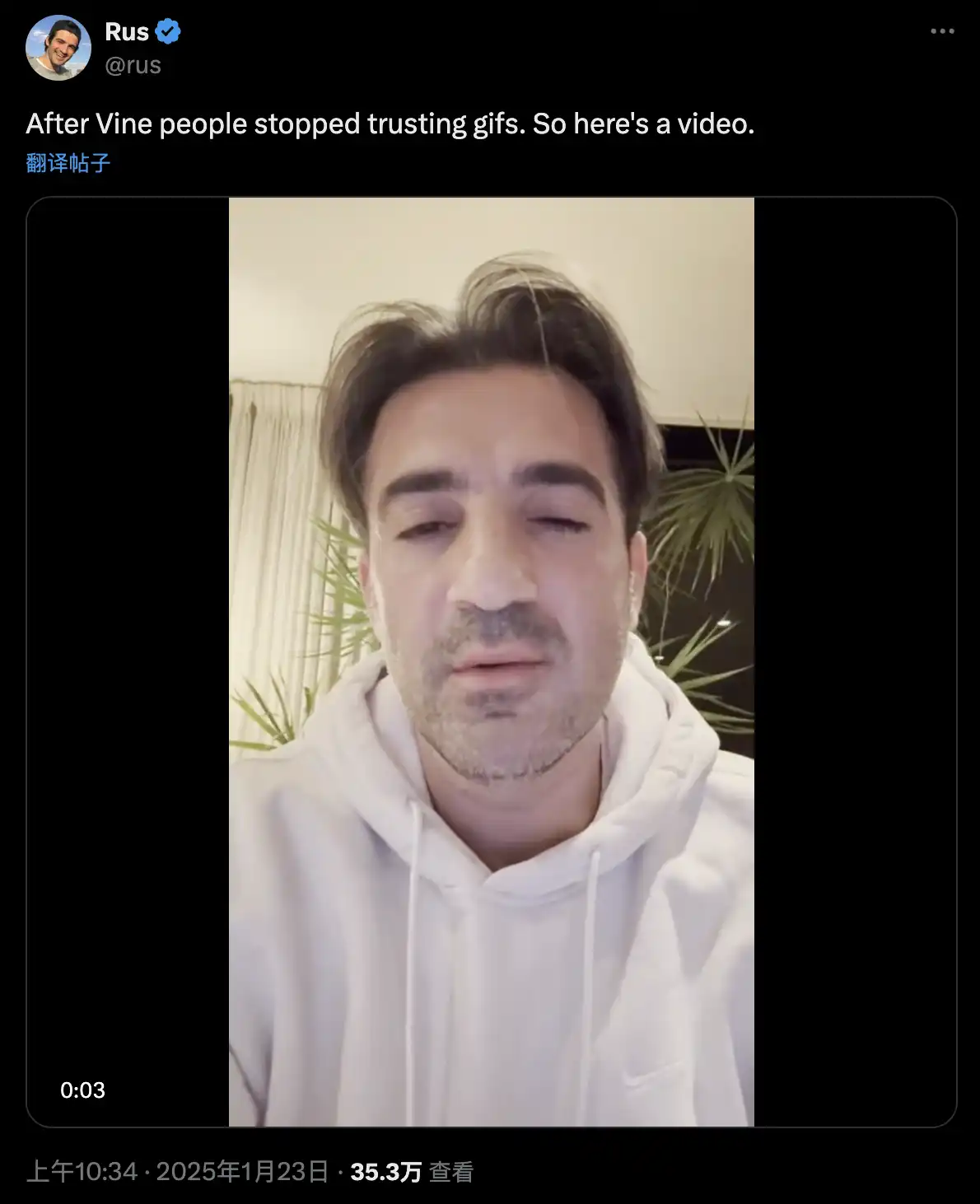 而一小时后,像是要呼应 Vine 短视频的风格一样 Rus 发布了一个 3 秒的视频证明自己并不是 AI,与此同时由「waamGQ」、「MGVWa」、「qedvzf」等结尾的多个地址分发资金的地址在这个阶段大量买入占领持币人前 30 名,现在大部分还依旧持有。而后 Rus 发布用 Bullx 的看板加上 Vine 的 LOGO 画了个上涨的箭头,这链上 Degen 风格的推文发布之后,代币价格一路上涨至 5000 万美元市值附近。