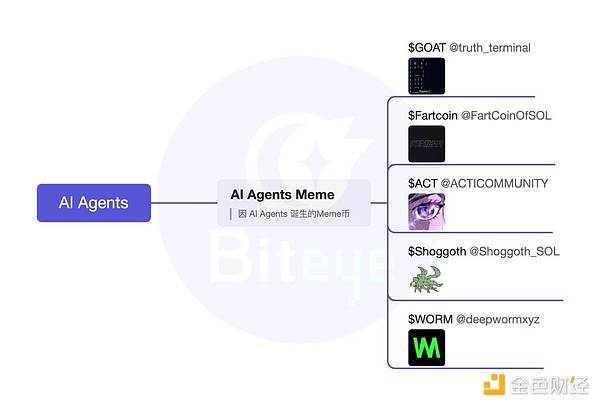 AI Agents Meme 币通常是因 AI Agents 诞生的 Meme 币,并没有太多技术 / 产品支撑。这类项目通常基于「Meme」文化,具有极高的波动性和高度的投机性。