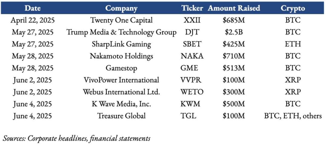 迄今为止,最受争议的财库交易当属特朗普媒体公司的案例。这也引发了关于 「战略性比特币(或数字资产)储备」 的质疑——如何处理潜在的利益冲突?至少从短期看,受 Microstrategy(MSTR)和 Metaplanet(3350.T)启发,私人和公共投资者均预期此类融资将带来中短期高回报。