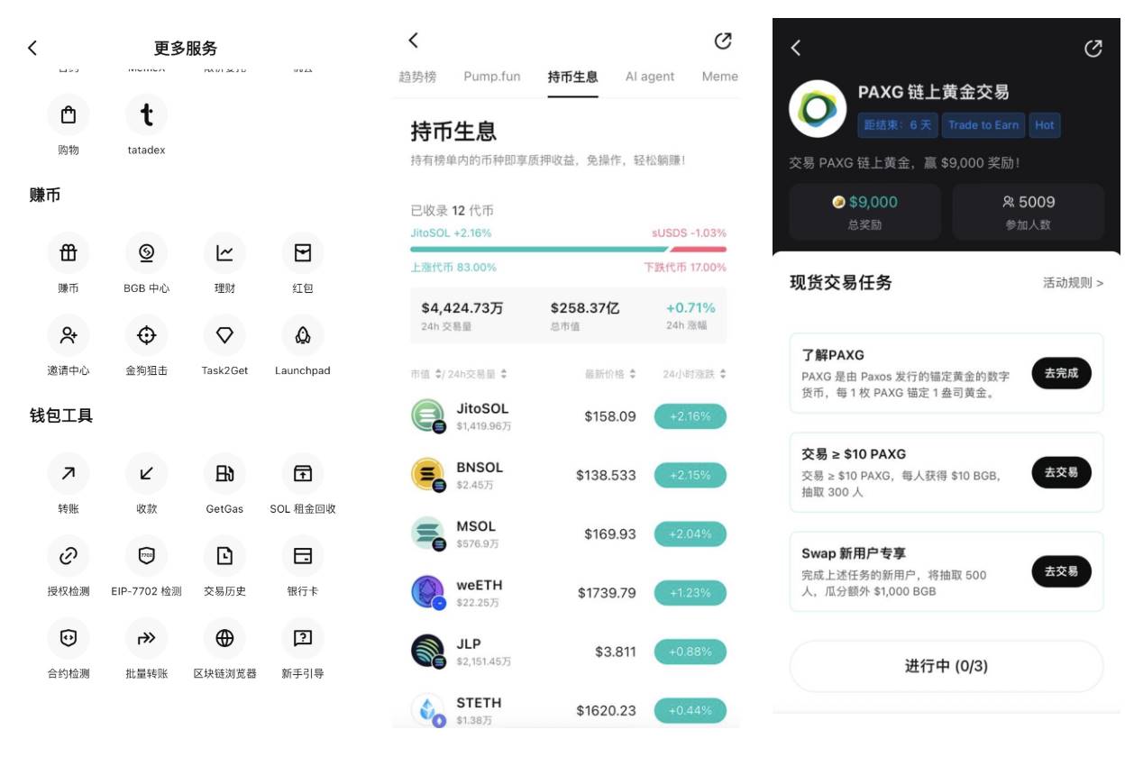 同时,Bitget Wallet在赚币页面,还会不定期上线各种链上激励活动。近期的关税风波中,为了配合用户购买黄金避险的需求,快速上线了PAXG链上黄金交易活动,在购买黄金锚定的链上资产同时,还能享受更多激励。