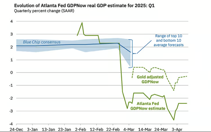 经济增长正在放缓。我们认为关税将加速这一进程,与此同时,亚特兰大联储预计第一季度美国 GDP 将萎缩 2.4% 。