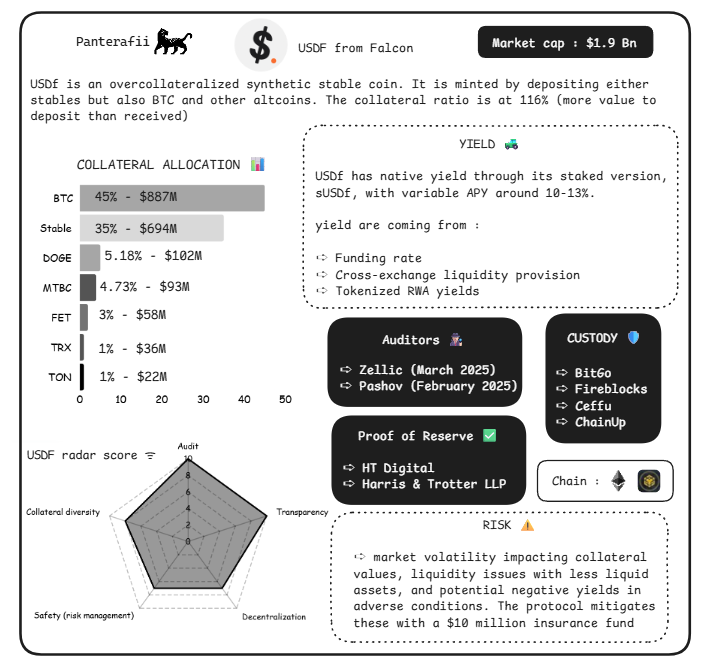 USDF(Falcon 发行): 混合型模型,通过永续期货提供收益。