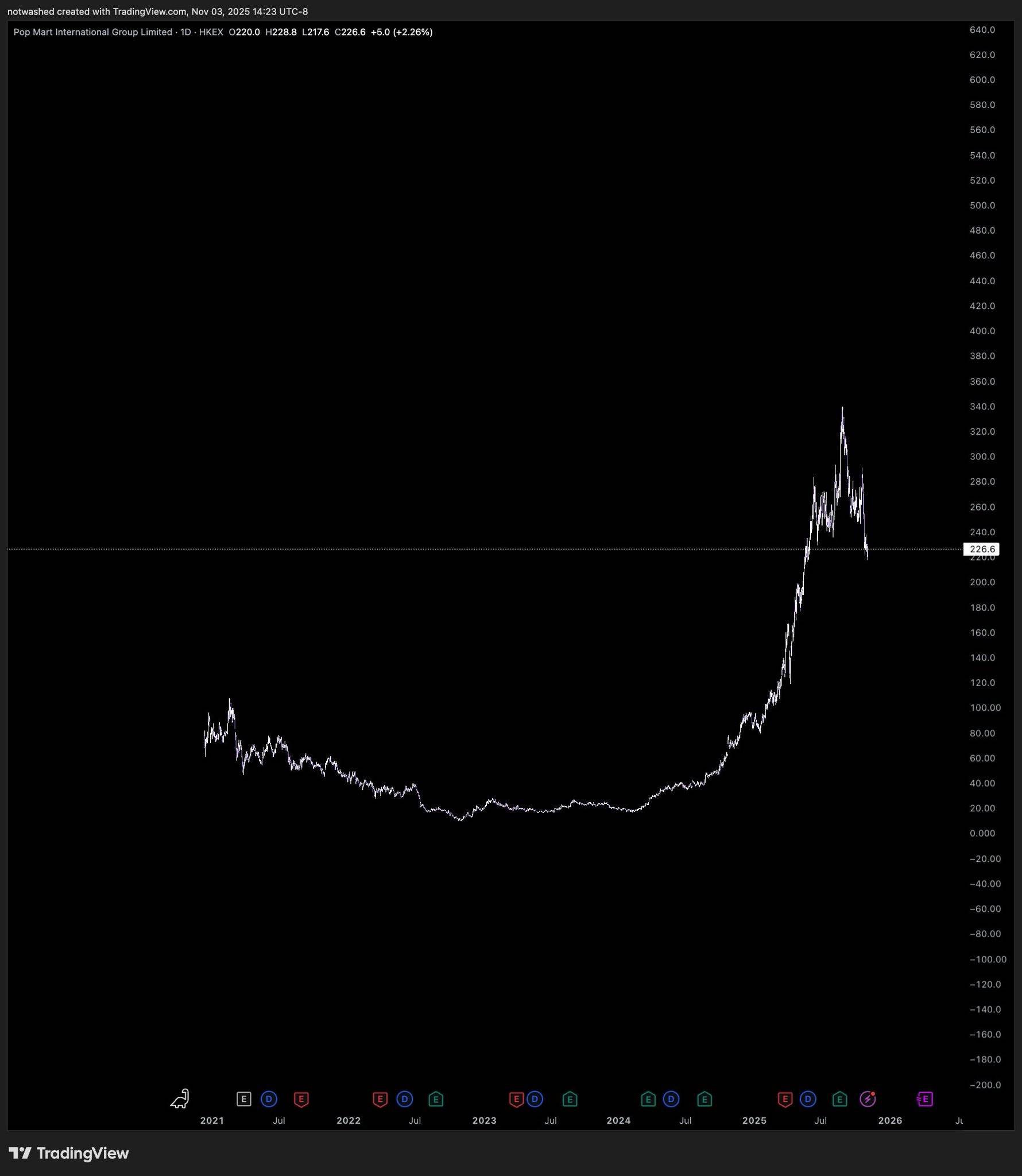 我将集换式卡牌游戏(TCGs)、Labubus 等归类为隐形投机的范畴——这些东西本质上是投机,但并不那么显而易见,且主要面向那些毫无防备的群体。今年夏天,Labubu 达到了它的“泡沫顶峰”,但自那以后我几乎没再听到什么关于它的消息。我不认为 Pokémon(宝可梦)已经触顶,但可能会在假期期间达到一个局部高点。宝可梦是个独角兽级的存在,所以无论如何我都不会去做空它。未来几年可能还会出现一些新的热点,就像以往一样,但整体来看,这个领域似乎已经随着 Labubus 的“退潮”而达到顶点。