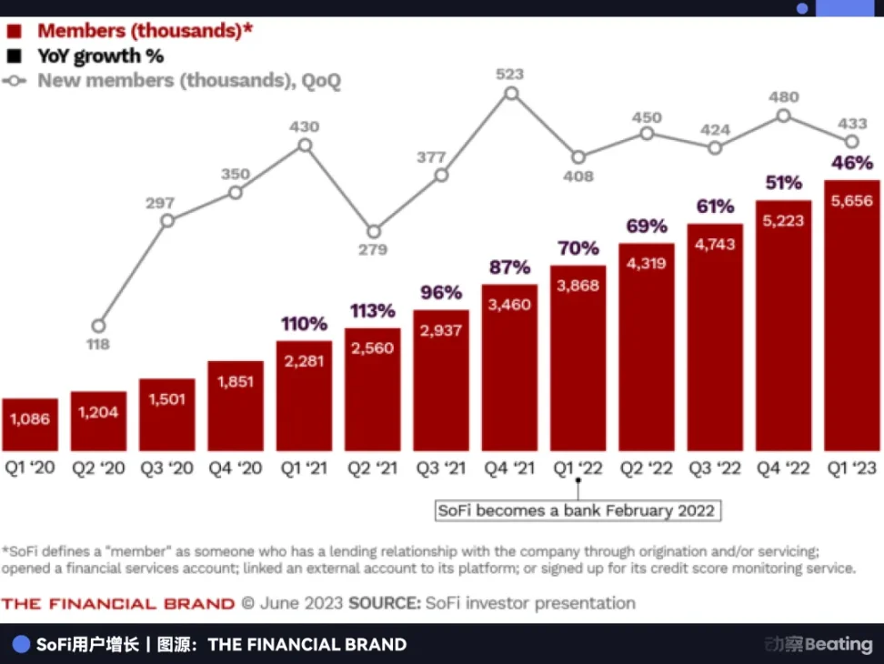 但 SoFi 讲的故事完全不同,它说,我们要先成为银行,然后再用银行的身份,去做别人做不了的事。