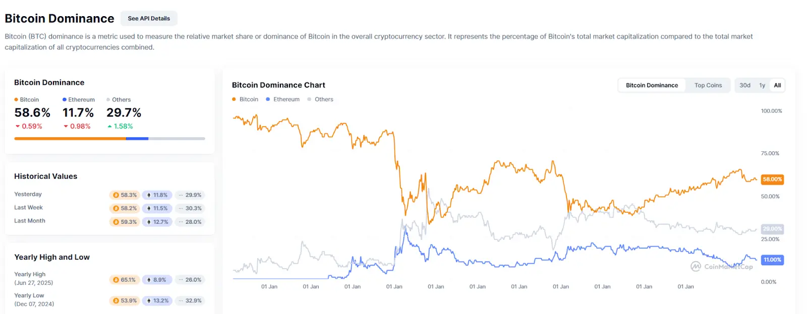 来源:https://coinmarketcap.com/charts/bitcoin-dominance/