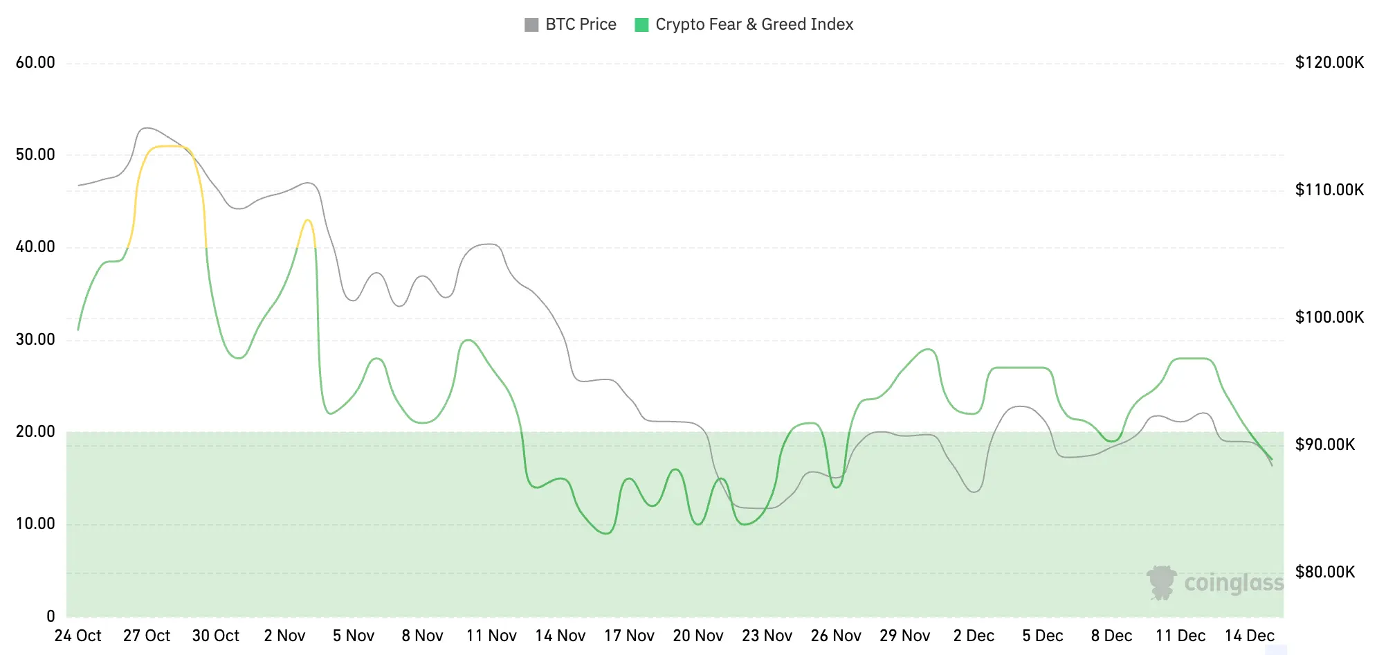 加密货币恐慌指数为17,显示为极度恐慌。