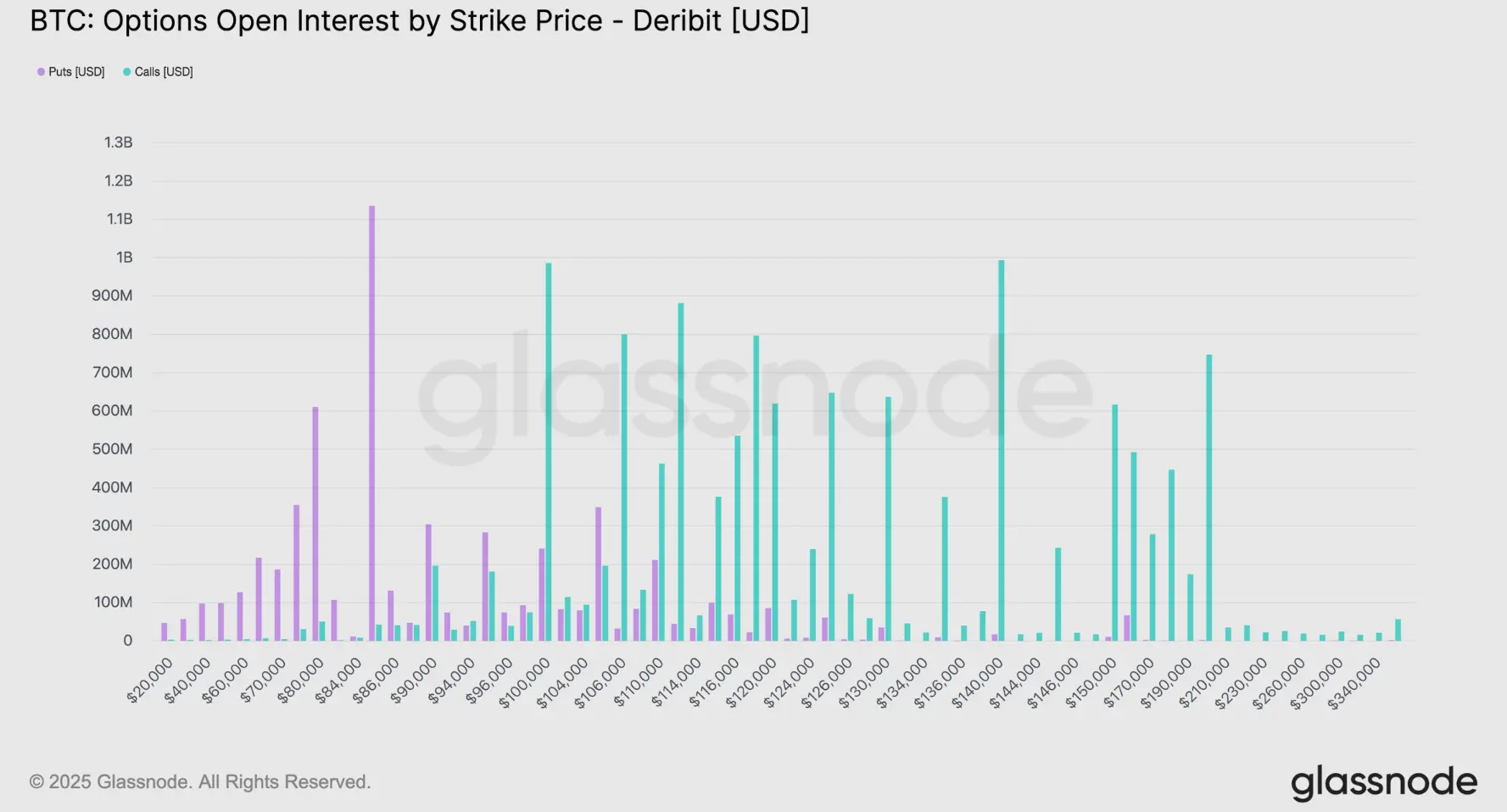 比特币期权未平仓合约行权价分布