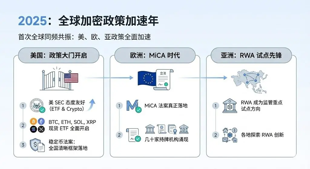 但当你从“结构”去看 2025,这一年突然变得很清晰:这是第一次,美国、欧洲、亚洲都在同一年展开政策上的“加速度”: