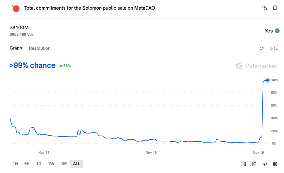 “Solomon 募集超过 1 亿美元”的概率在最后时刻飙升