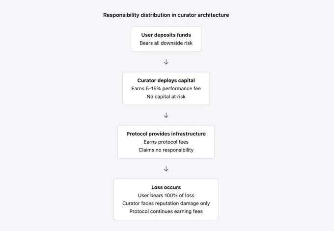 BGD Labs 创始人、Aave 贡献者 Ernesto Boado 直接总结了问题:风险策划人是在「免费把你的品牌卖给赌徒」。协议赚取手续费,风险策划人赚取业绩分成,而用户在不可避免的失败发生时承担损失。