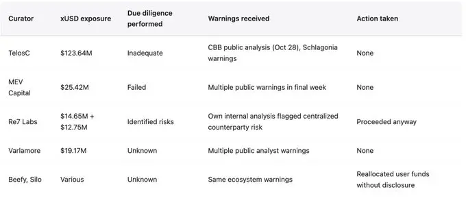 警告曾公开且明确:CBB 于 10 月 28 日发布了杠杆比率,Schlagonia 在崩盘前 172 天直接警告过 Stream。然而这些警告被忽视,因为激励结构鼓励忽视风险。