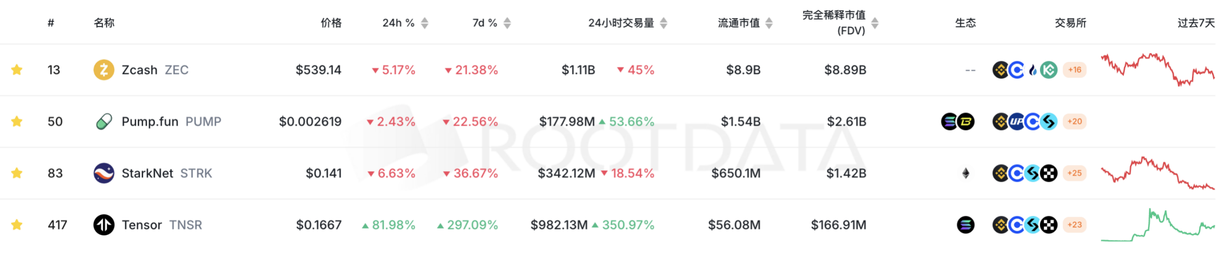 1、上周整体市场低迷,隐私板块也开始下跌,ZEC一周下跌18%,整体表现高位横盘;STRK一周暴跌31%,基本跌回起涨点;HYPE面临大额解锁,一周下跌18%;PUMP团队持续卖币套现,币价一周下跌26%;小币TNSR拉涨,一周上涨250%,周内高点上涨800%,Tensor基金会从Tensor labs手中收购Tensor marketplace,销毁Tensor labs持有的22%的TNSR代币。
