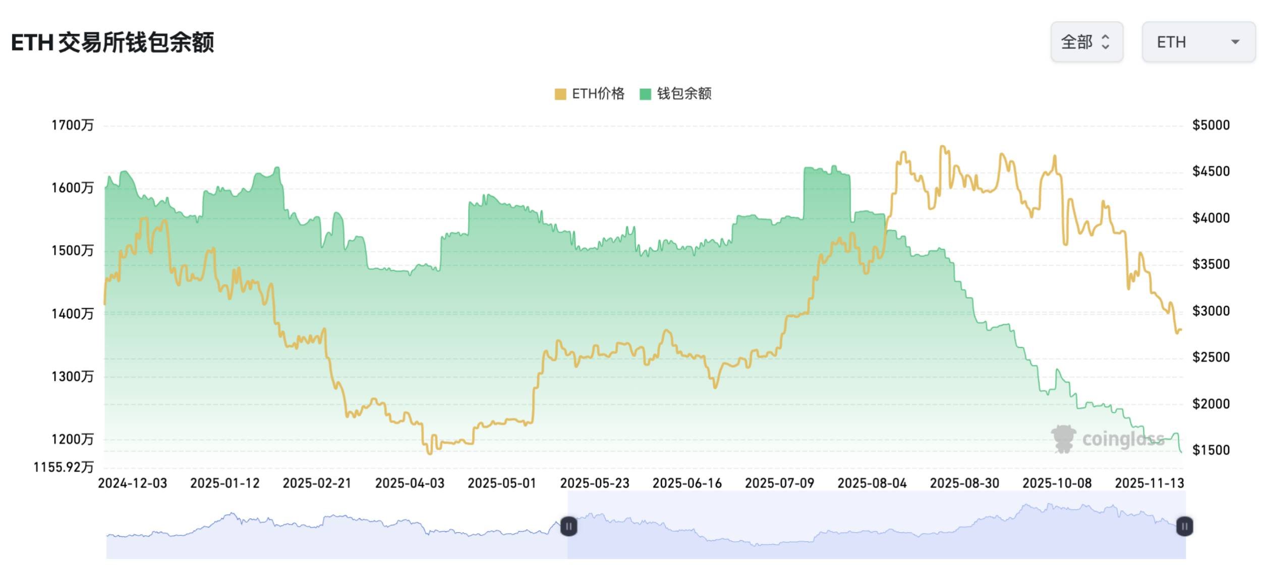 图:ETH交易所余额环比下降1.76%