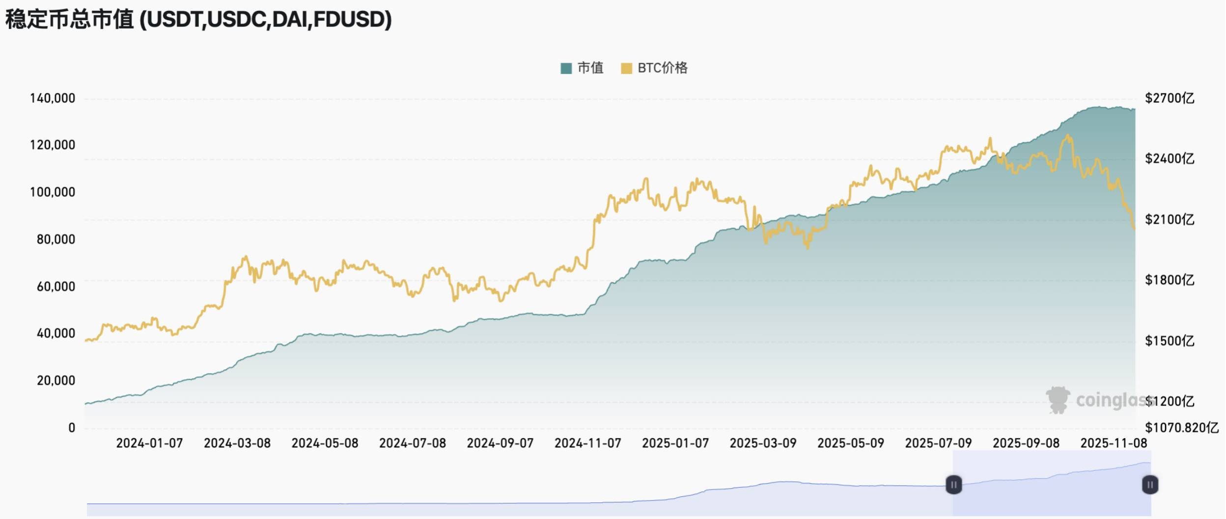 图:稳定币市值环比下降0.1%