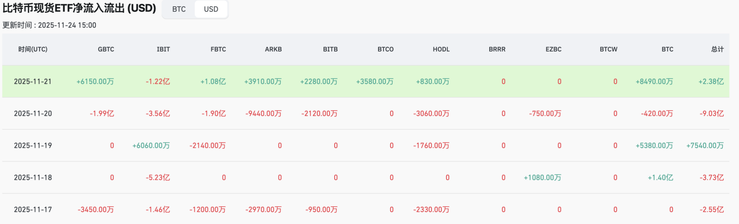 图:BTC ETF流出12.18亿美元,环比增长9.5%