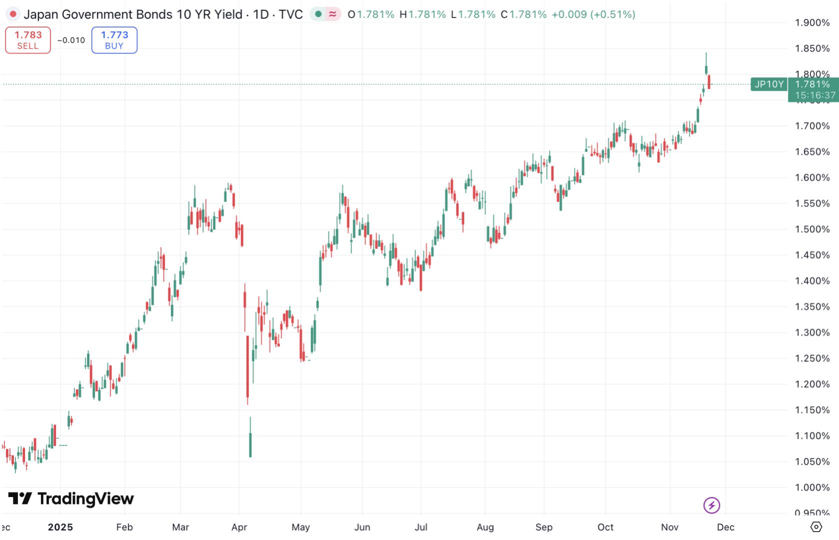 图:十年期日债收益率升至1.78%