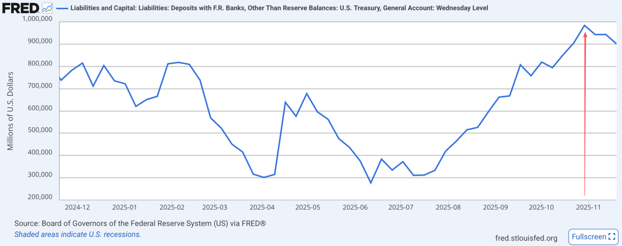 政府停摆结束后,TGA账户余额尚未出现明显下行,财政端流动性还未注入市场。