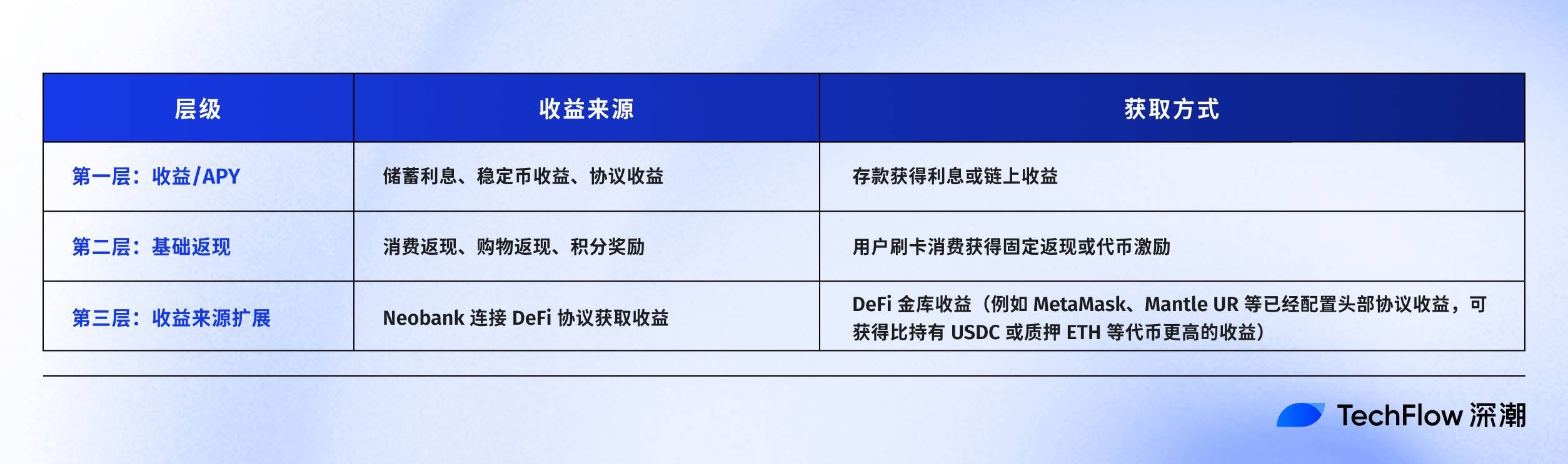 收益上:Neobank 将支付结算与链上收益协议相结合,部分返现来源于协议收益或支付分润,使用户在消费的同时也能共享生态增长收益。