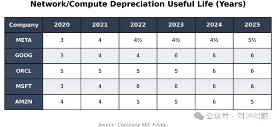 但在财报上,他们却纷纷将这些计算设备的使用寿命延长至 5 年甚至 6 年。
