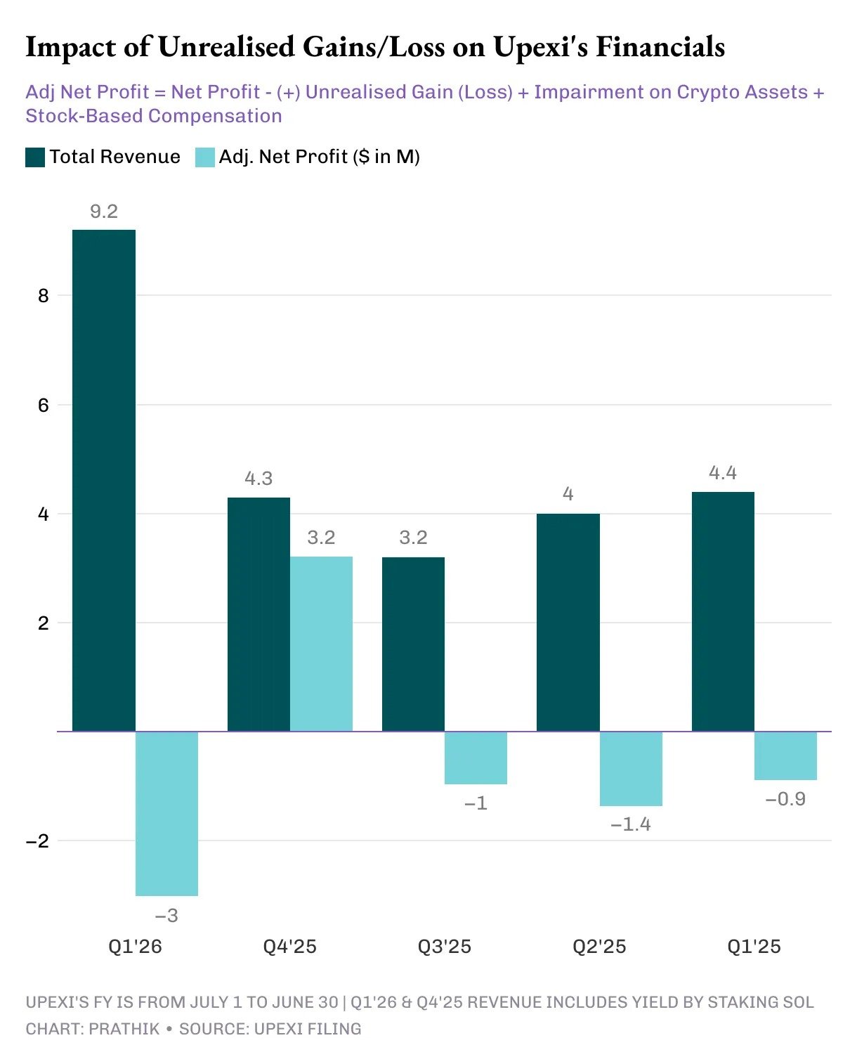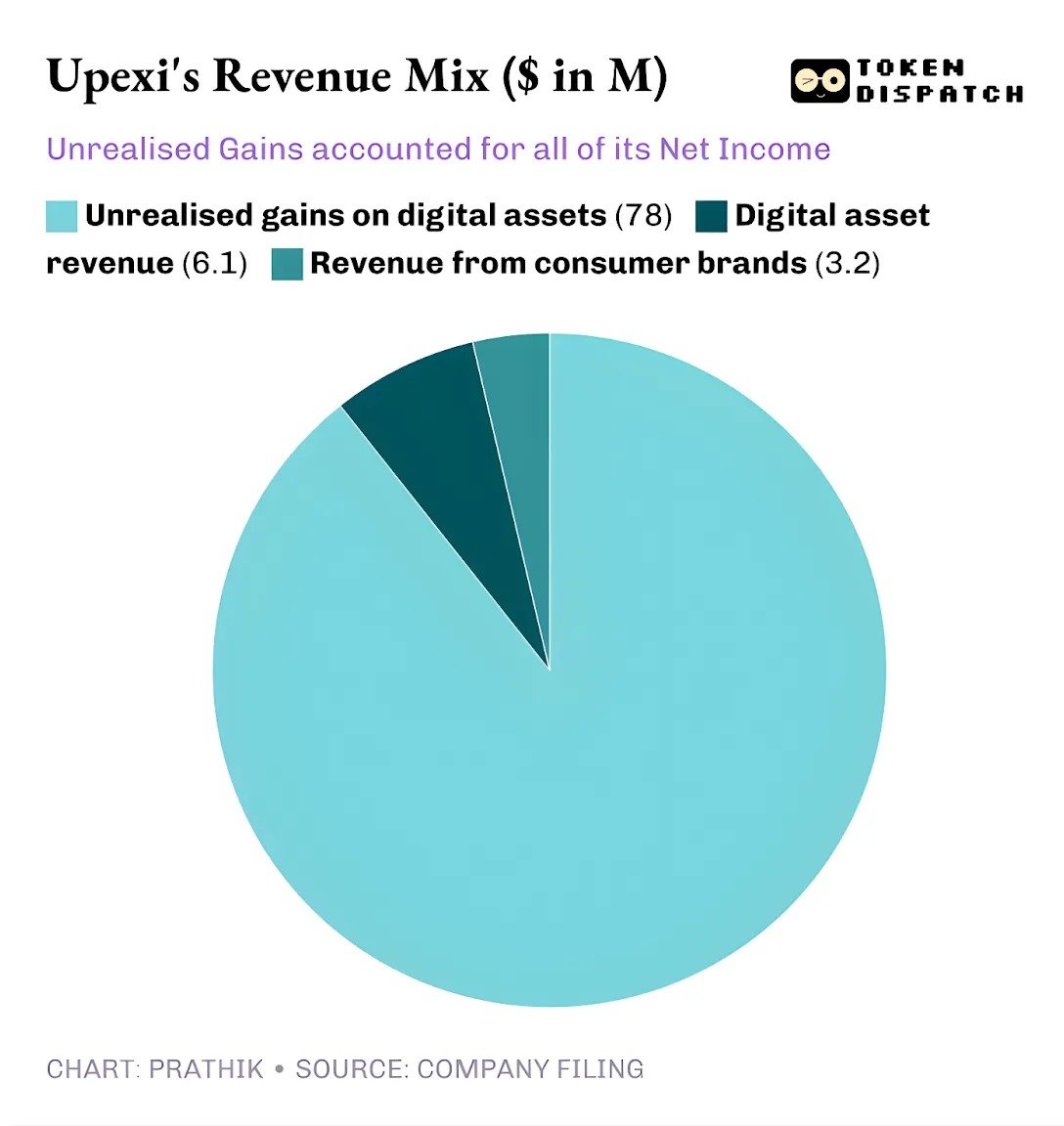 这种打法更像对冲基金,而非普通 DAT。但当你去看 Upexi 的现金流时,同样的担忧又浮现了——和 SharpLink 如出一辙。