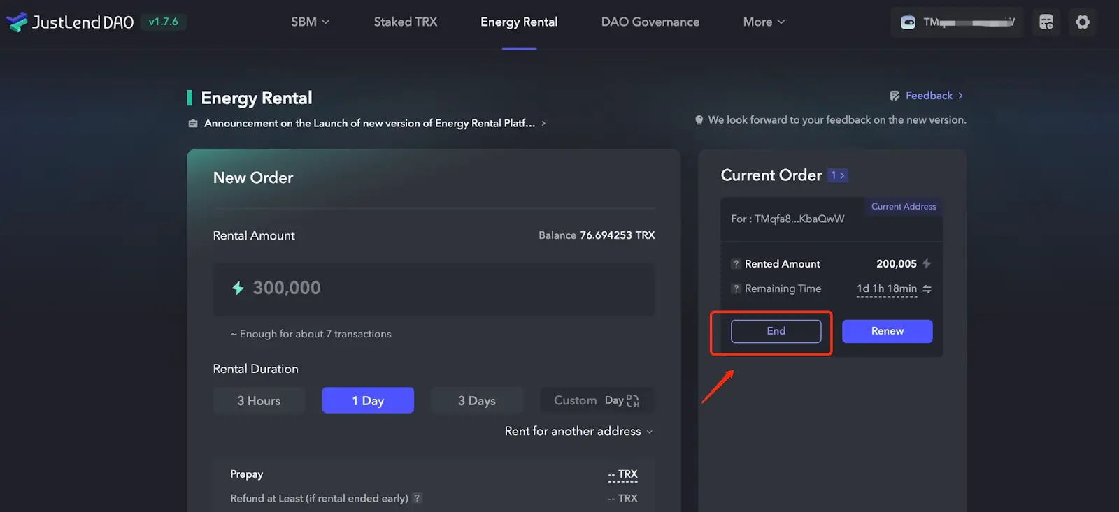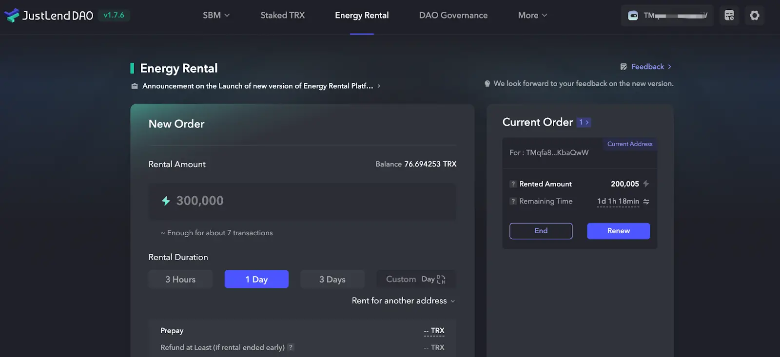1、首先在JustLend DAO 导航页进入“Energy Rental”页面。