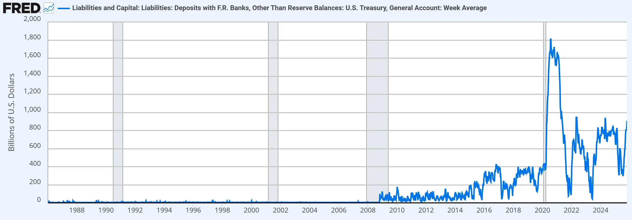 TGA账户是美国财政部在美联储开设的“支票账户”,用于管理联邦政府的日常收支。通过调整TGA余额,财政部可影响金融市场的美元流动性。 虽然目前TGA流动性拥有较大余额(大而美法案提高债务上限后财政部增加了现金储备,也可以理解成从市场抽取了流动性。),但美国政府的关闭影响了财政部释放流动性的进程。