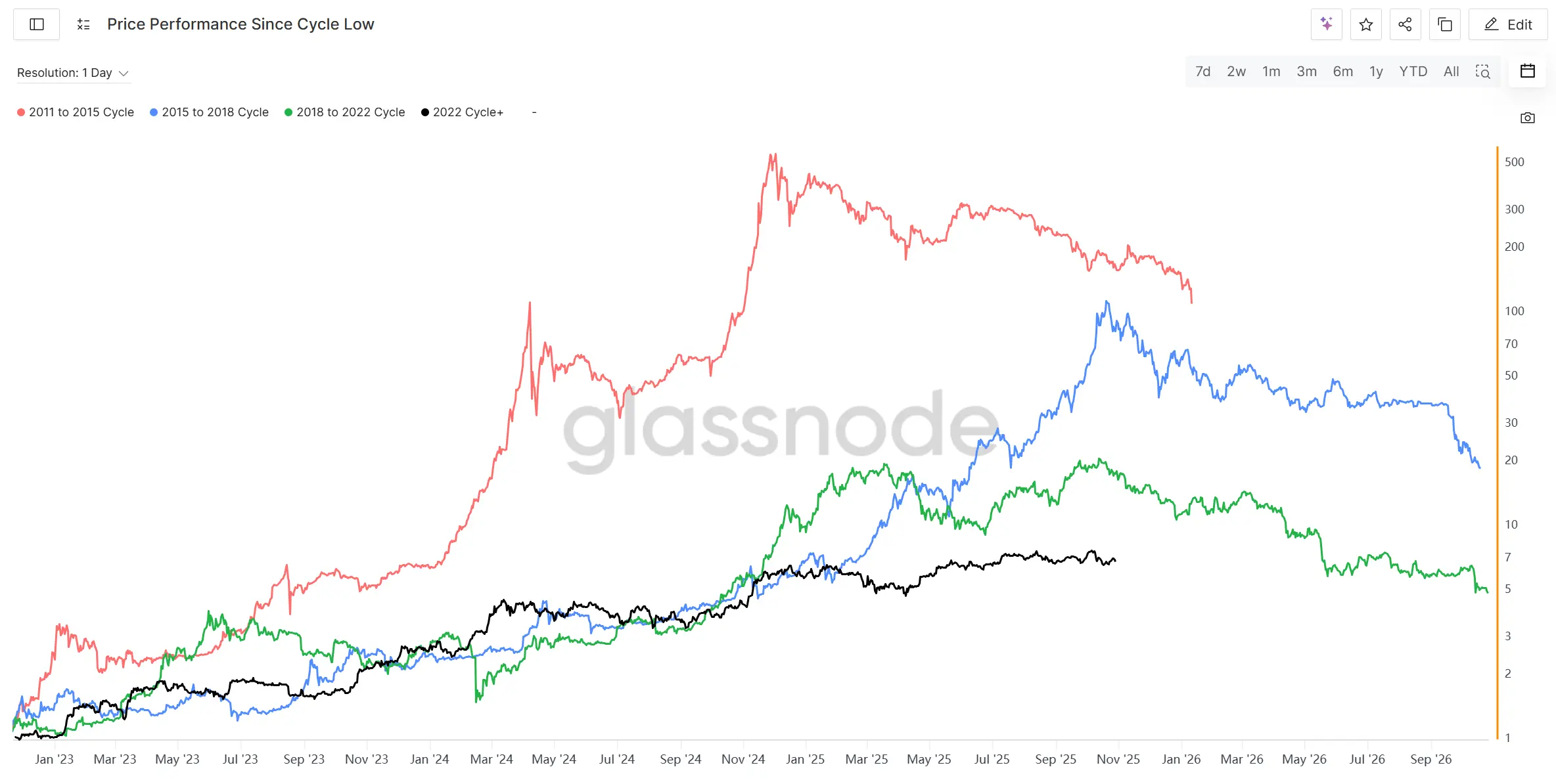 自10月11日清算事件以来,加密市场情绪明显转弱。大规模合约爆仓和流动性抽离引发连锁反应,市场普遍认为当前或已处于牛市末期阶段。原本在本轮上涨周期中鲜有提及的“四年周期”概念,再次成为市场主流叙事,反映出投资者对周期顶部的高度敏感与对潜在熊市的担忧。