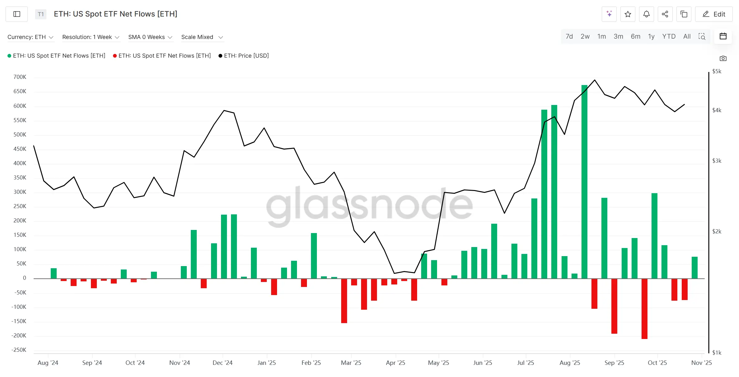 首先看一下BTC和ETH现货ETF流入流出情况,在本轮牛市中,其流入流出情况可以一定程度反映流动性进出加密市场的情况。从资金流向看,BTC与ETH现货ETF在“1011清算事件”后连续两周录得净流出,但规模有限,尚属可控范围,未显示系统性撤资迹象。