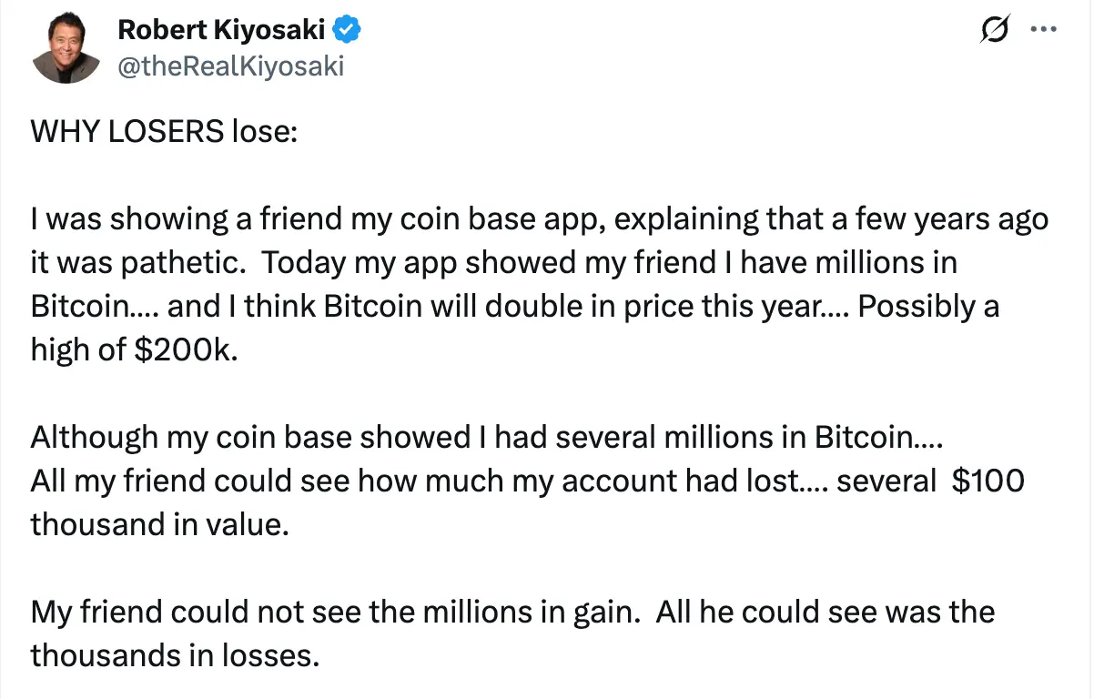 《富爸爸穷爸爸》作者:当前持有数百万美元的 BTC,预测其价格今年将翻倍至 20 万美元
