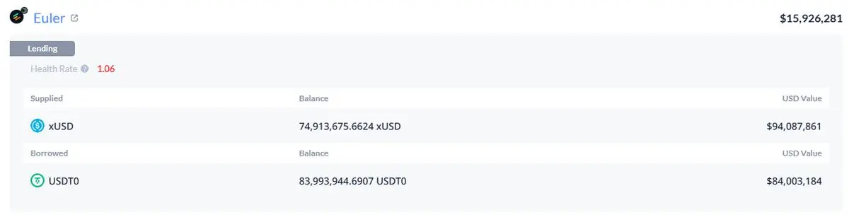 由于他们将旗下产品的资金混用,我们无法得知其中有多少是通过循环借贷来实现其自身背书的。但可以确定的是,这其中包括在 Plasma Euler 上的一笔 9500 万美元的头寸。