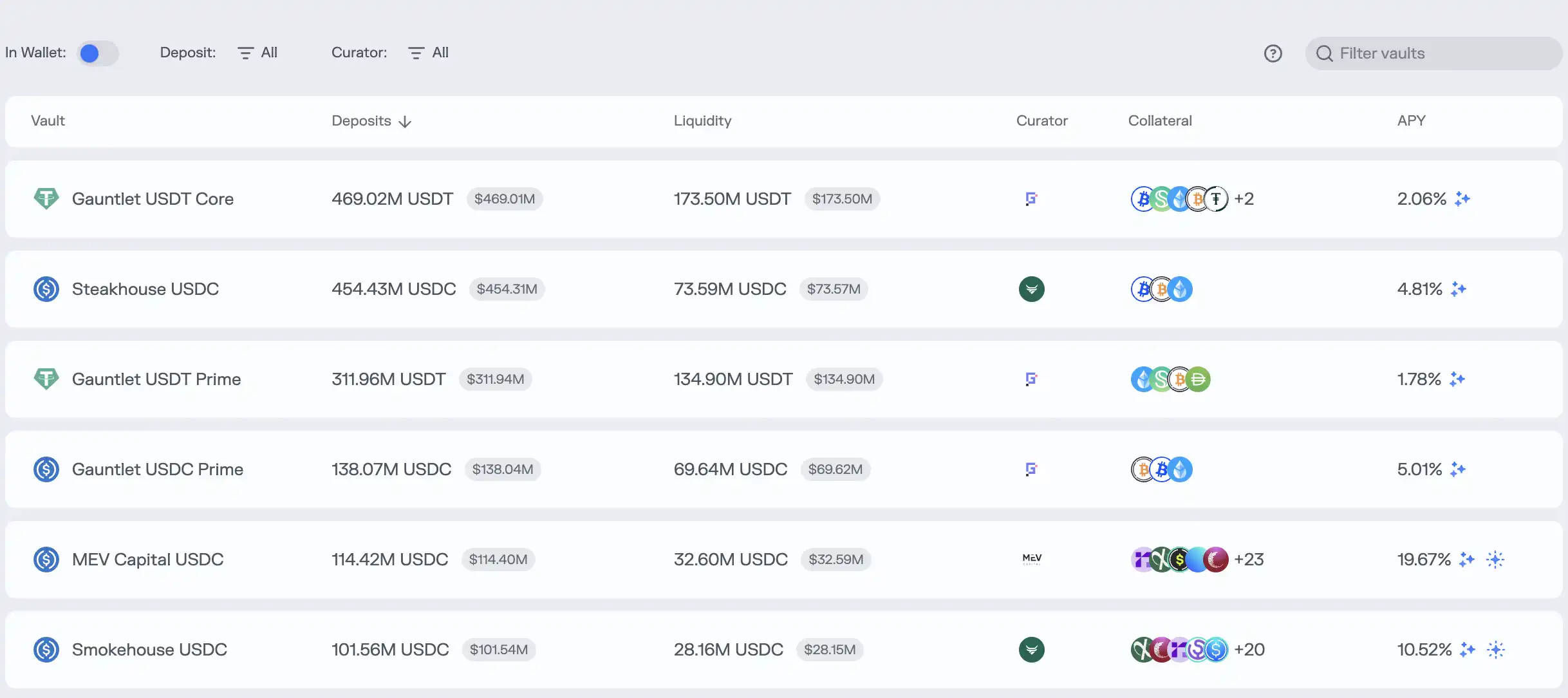 于是,它们引入了「Curator」(专业主理人)。用户不再将钱存入一个统一的池子,而是选择由 Curator 管理的一个个「金库」(Vaults)。用户将钱打进金库,而 Curator 则全权负责如何用这些钱去投资、去生息。