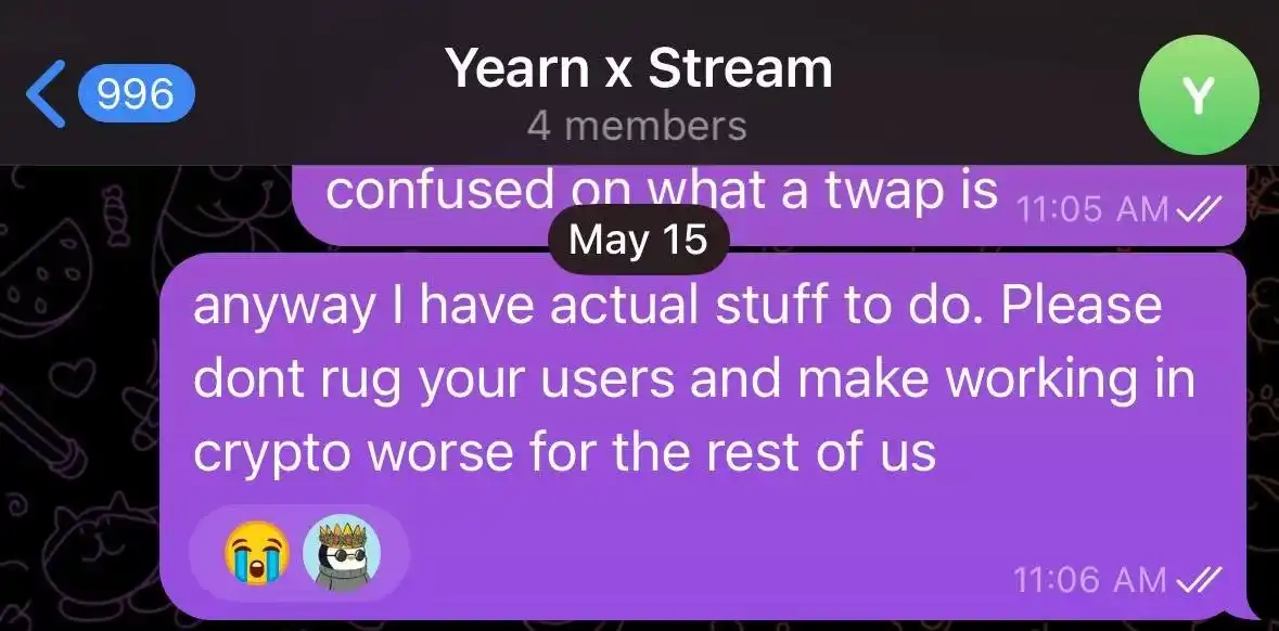 曾经 Yearn Finance 和 Stream Finance 的对话