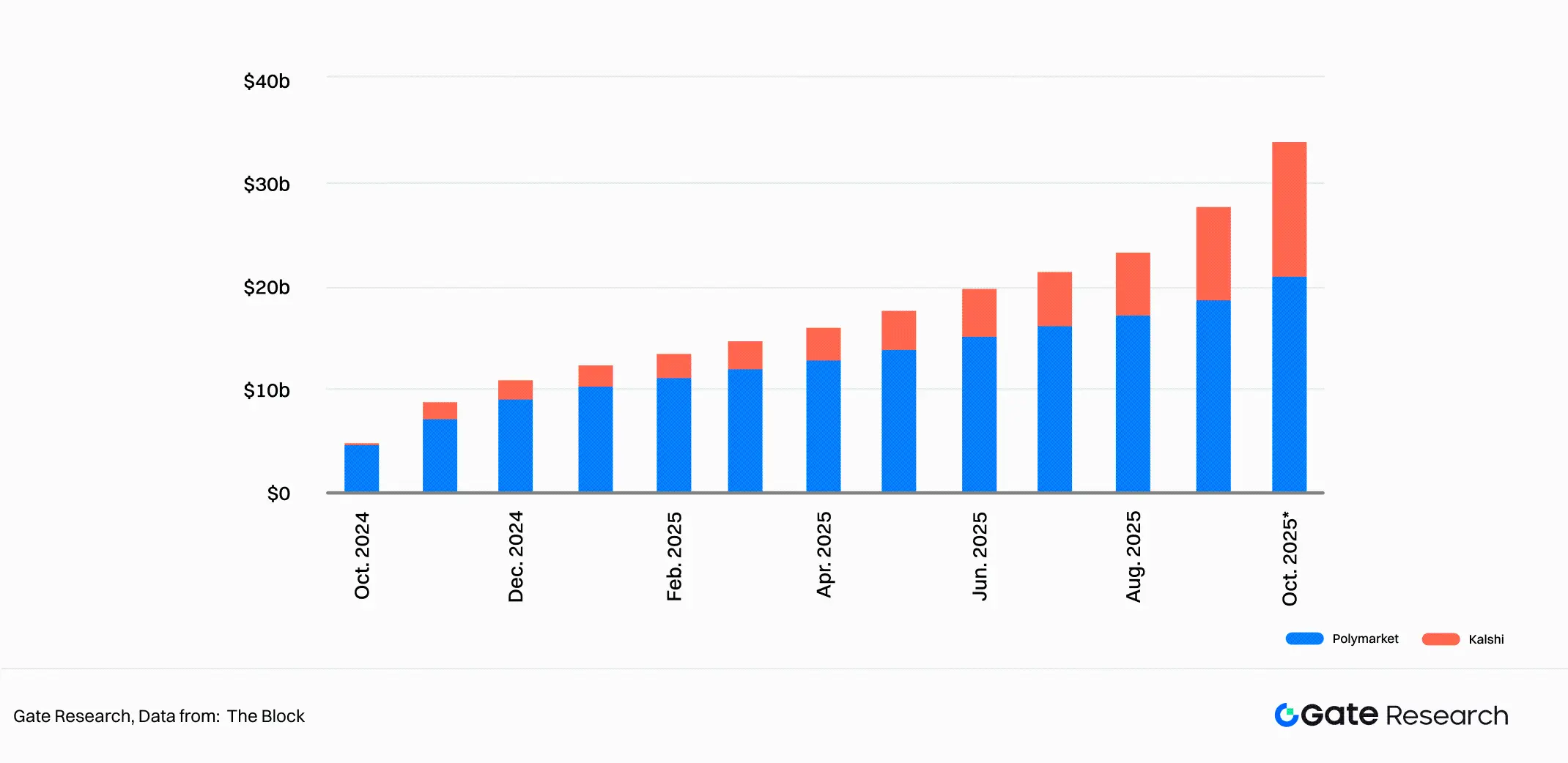 3. 新兴应用场景对低延迟与跨链通信的需求爆发:新一代应用正对预言机提出更高的性能与架构要求。随着 AI、预测市场等新兴场景的崛起,链上对低延迟、高精度数据及跨链消息传递的需求显著上升。这类应用不仅要求预言机能够快速、准确地提供价格信息,还需具备多链同步与可信验证的能力。以预测市场为例,它是预言机在“事件验证”领域的典型落地方向。Polymarket、Kalshi 等平台均依赖预言机来确认现实世界中的事件结果,如选举结果、体育赛事或宏观经济数据。随着该领域交易规模的迅速增长——截至 2025 年 10 月,Kalshi 与 Polymarket 的累计交易量已达 339.4 亿美元——预言机的事件验证与消息传递能力正成为推动生态扩张的重要力量。由此,预言机的角色正在从“信息喂价器”进化为“跨链事件协调器”,进一步强化其在 Web3 生态中的粘性与基础设施地位。