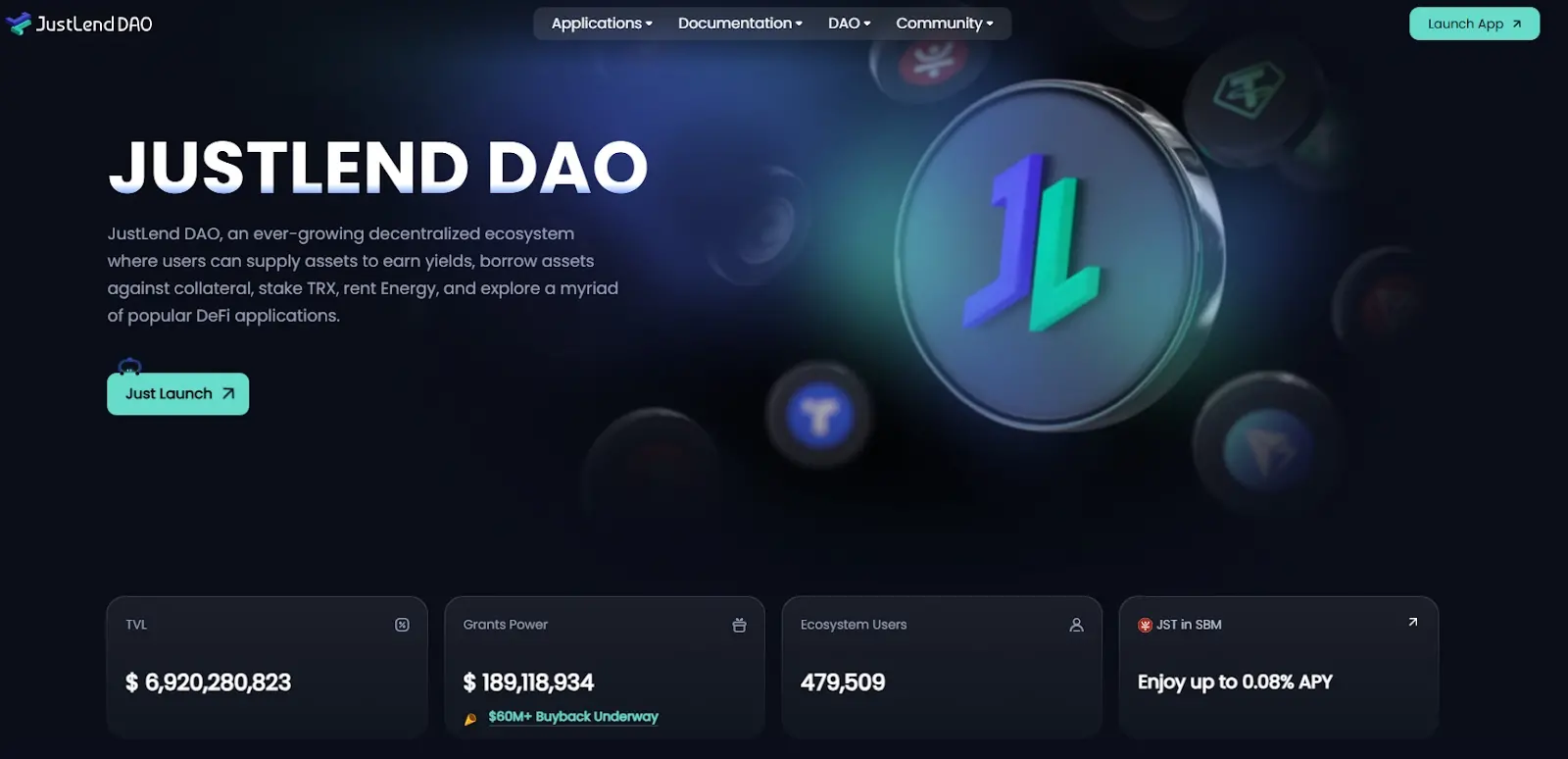 在生态建设与 Token 激励层面,JustLend DAO还有社区主导的激励组织Grants DAO 为其赋能。它以多元化支持为核心,既为助力 JustLend DAO 及 JUST 生态发展的项目、建设者提供资源扶持与专项激励,也通过市场风险精细管控为生态安全筑牢防线。截至目前,Grants DAO 已通过用户激励、生态回购销毁、市场稳定维护、开发者扶持等多维度,累计拨款约 1.89亿美元。