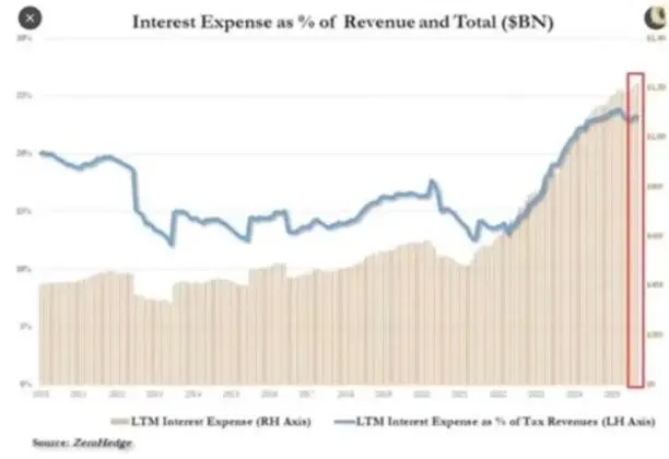 如今近四分之一的政府收入,仅仅用于支付国债利息。