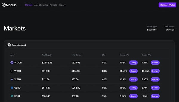 Modus 是 Monad 上的原生借贷协议。它具有与其他任何借贷协议一样的标准市场,并为 LST 提供自动循环策略,以赚取尽可能高的收益。它还引入了密封竞价清算机制,该机制将清算中捕获的价值保留在协议内部,防止其泄露给 MEV 机器人。