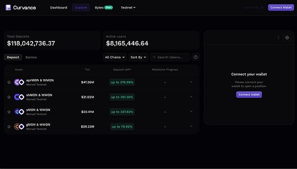 Curvance 是 Monad 上的货币市场,用户可以在这里借贷、存入自动复利金库和优化的 DeFi 策略,并在一个地方获得更广泛的 DeFi 敞口。