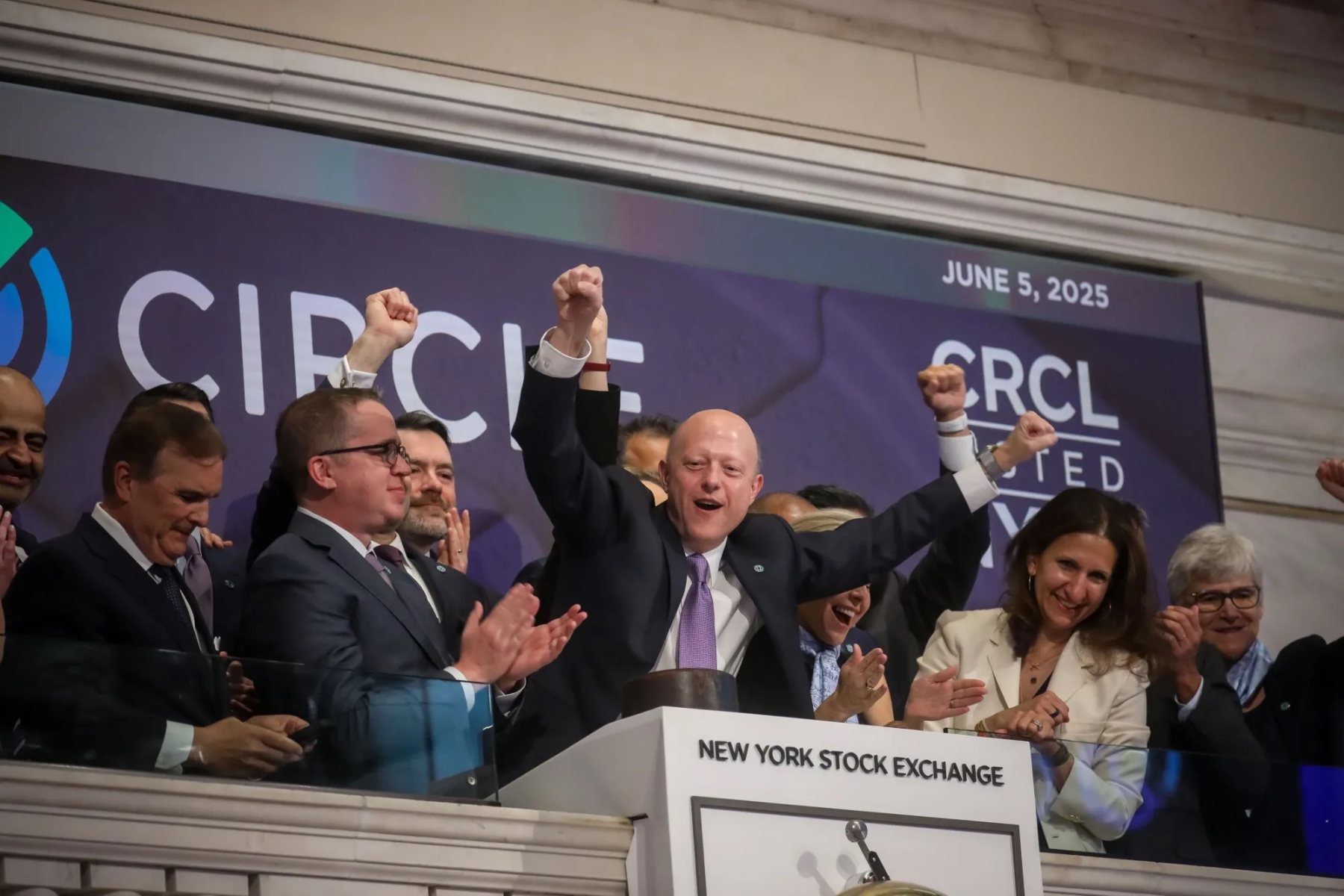 6 月 5 日,Circle CEO Jeremy Allaire(中)在纽约证券交易所出席公司 IPO 仪式。摄影师:Michael Nagle / 彭博社