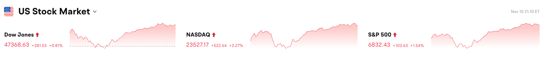 2、美股周一全线收高,道指上涨 0.81%,纳指劲扬 2.27%,标普500指数攀升 1.54%;