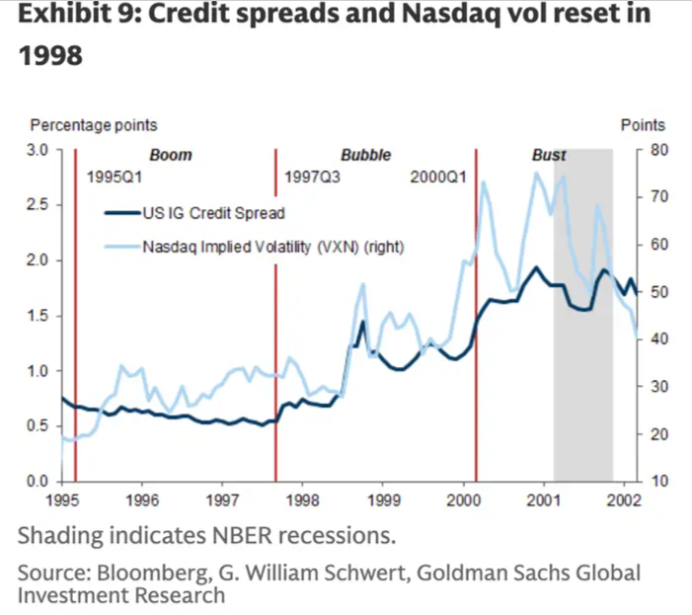 该行指出,在互联网泡沫破灭前,信用利差有所扩大。