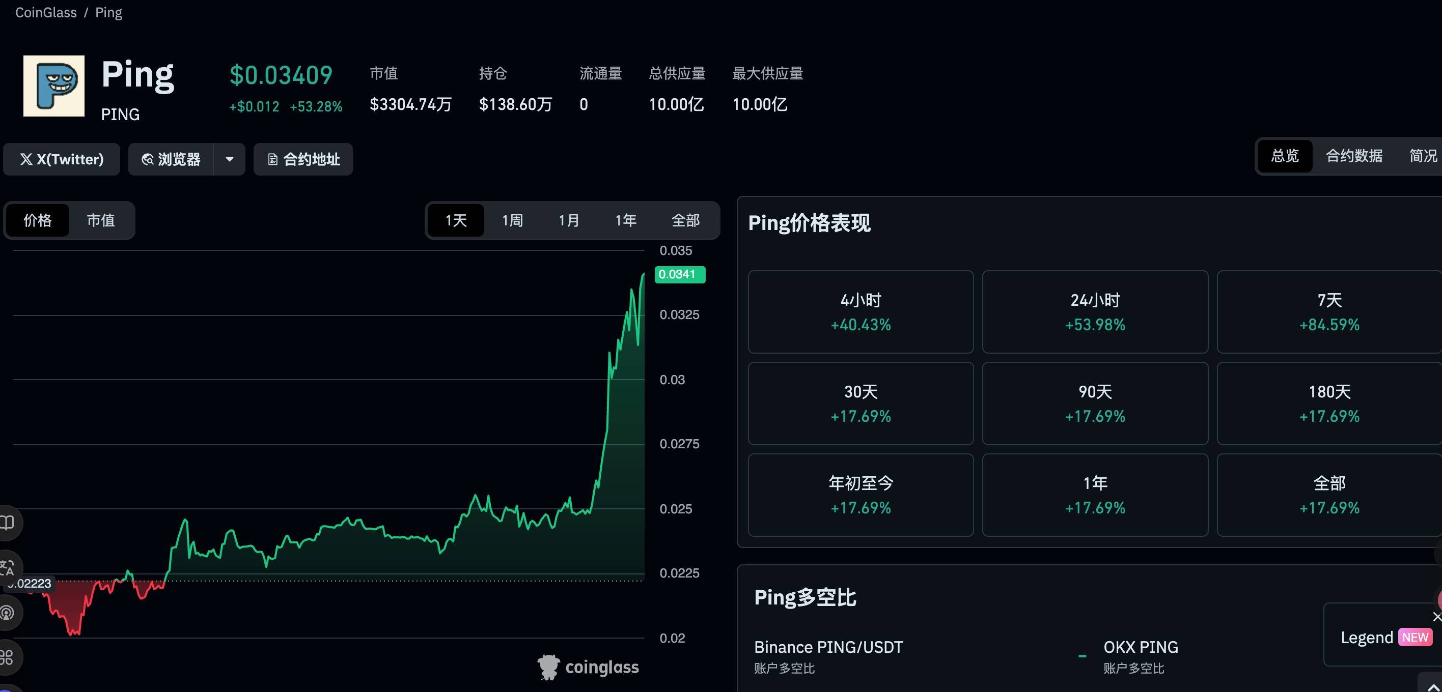 消息一出,PING 代币价格从日内低点快速拉升,24 小时涨幅接近 50%。