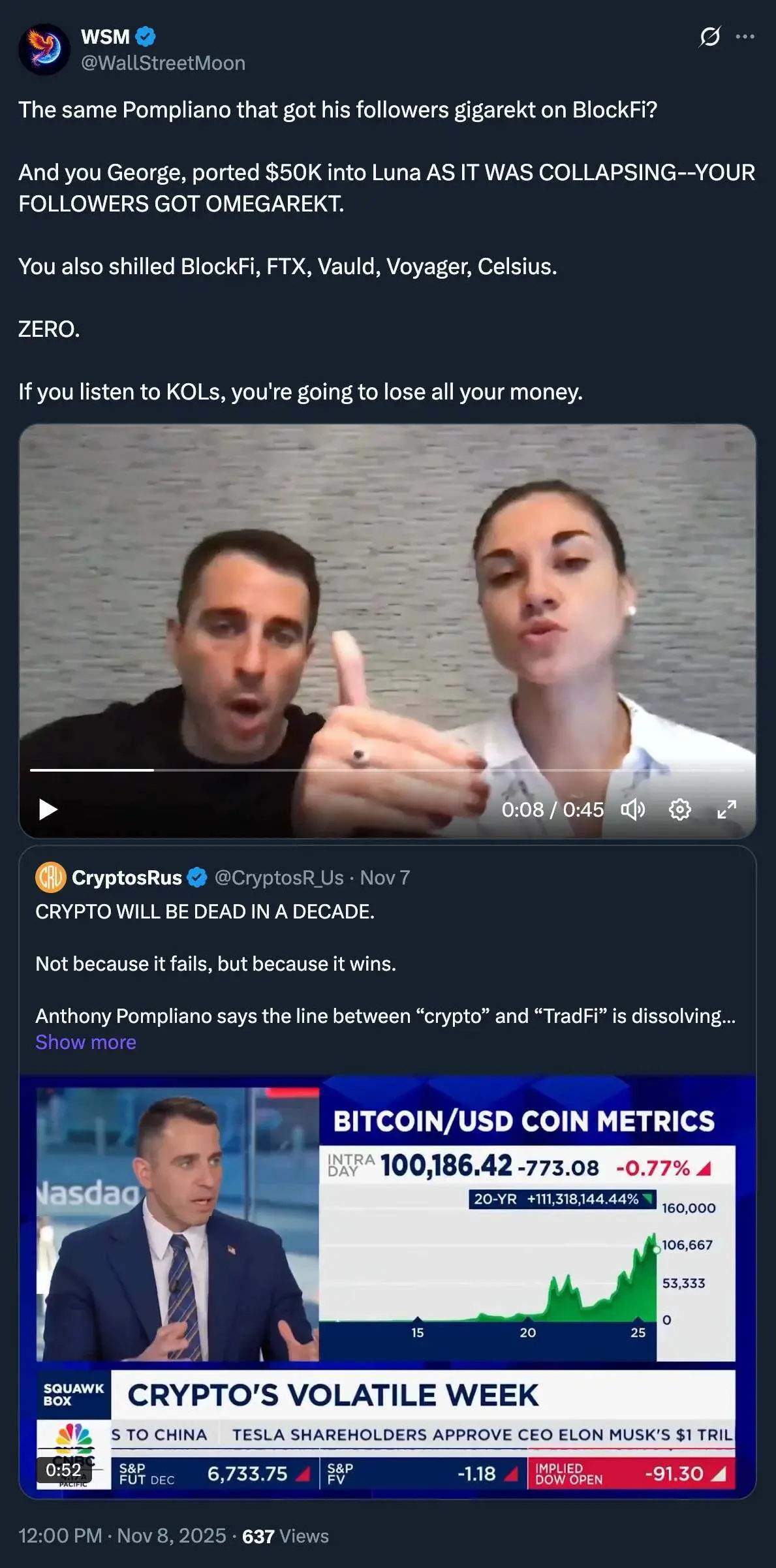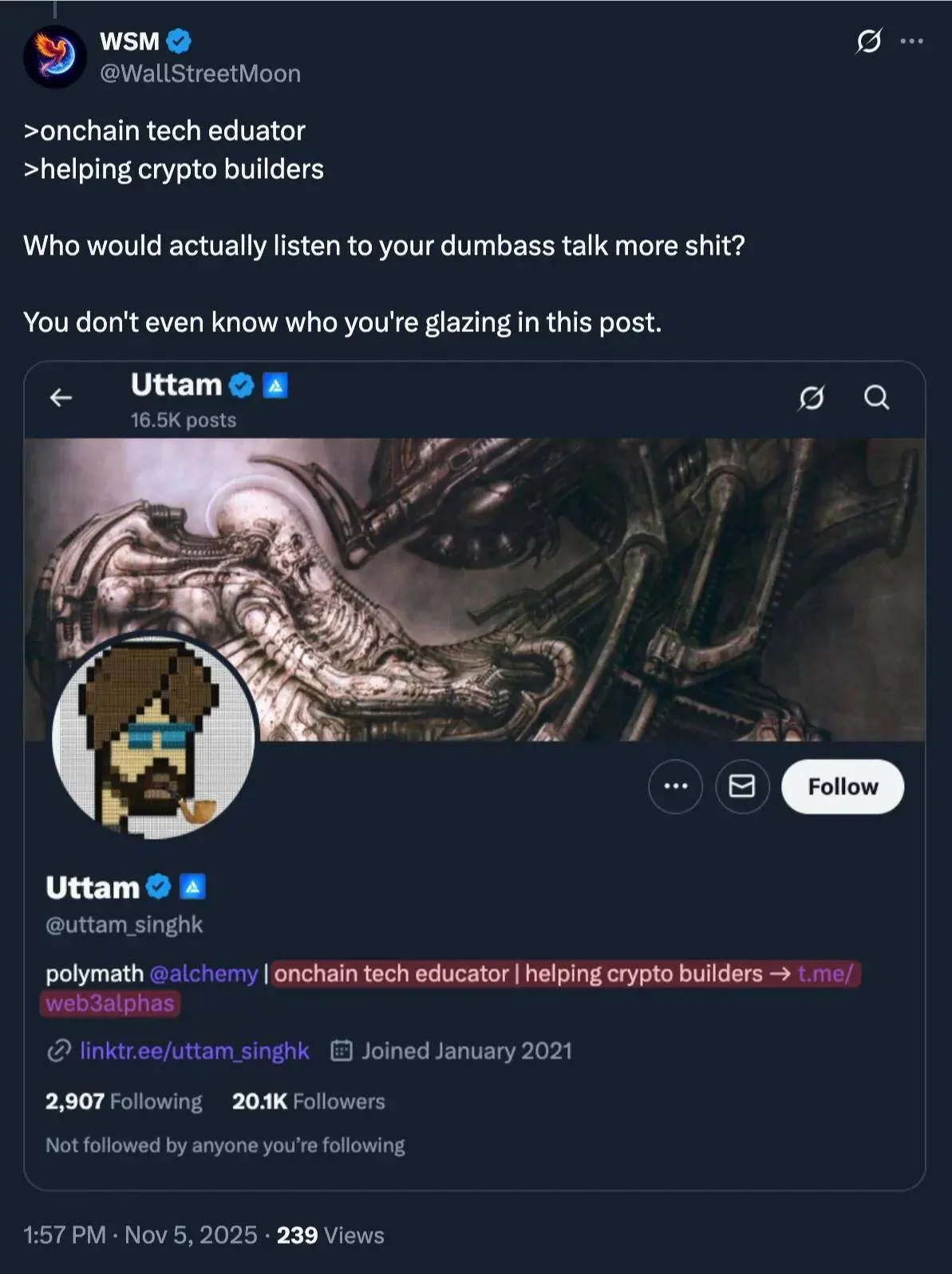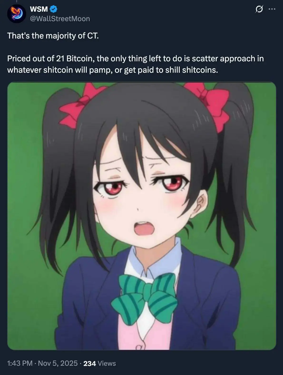 加密推特(CryptoTwitter)忙着讨好所谓的“关键意见领袖”(KOLs),而没有抓住这些黄金机会。到了 2025 年,他们还在舔这些 KOL,却还在抱怨为什么自己从未赚到钱。